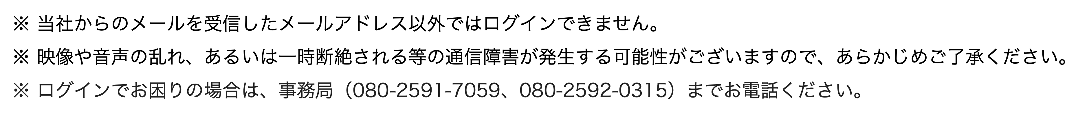 メールアドレス(当社からのメールを受信したもの)、パスワード(当社からのメールに記載)を